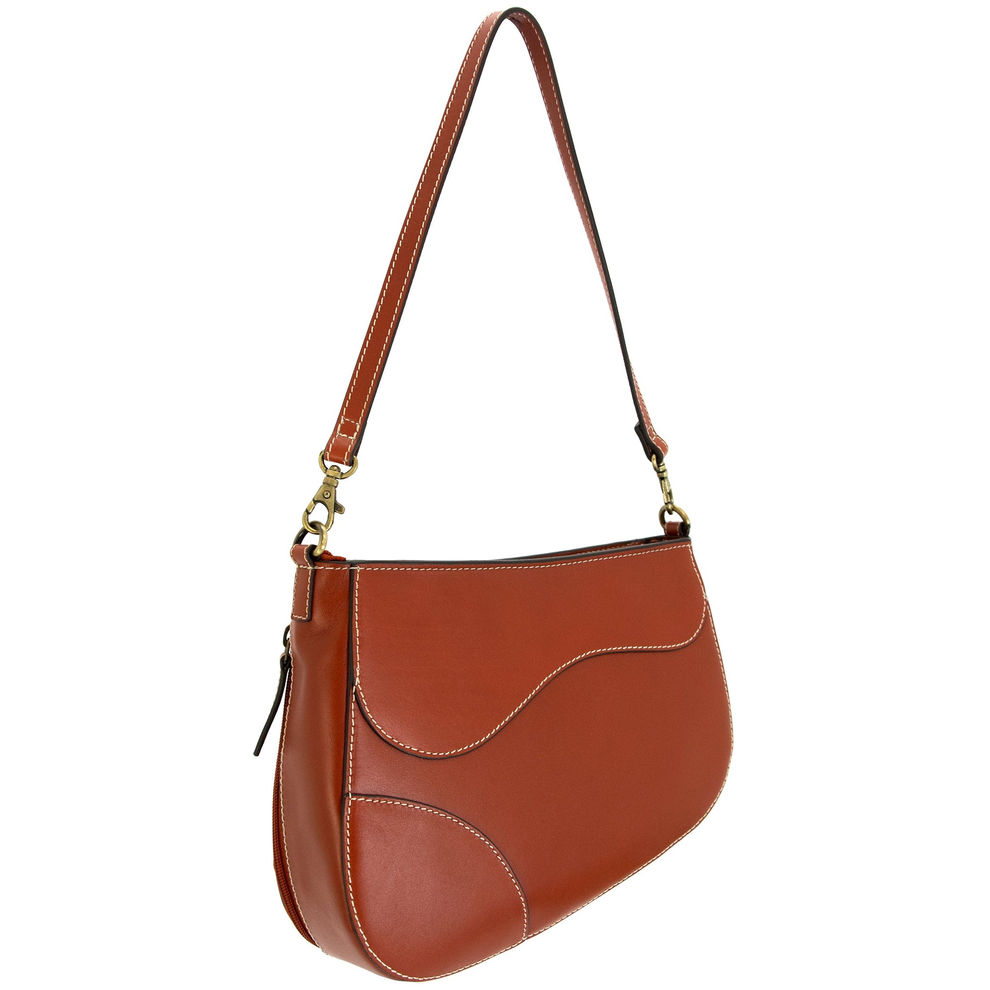 This iconic Saddle bag design has been reinvented to give you a stylish while still comfortable bag while carrying a concealed weapon. The bag’s main compartment is a spacious deep pocket with one top zipper. Our Saddle may be carried over the shoulder or by hand, if needed it can be switched to a crossbody bag with a detachable strap. This Saddle features cinnamon, blue, and tan genuine leather finish with antique gold-finish metal hardware.