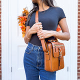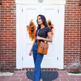 Designed with security in mind, the Vault Crossbody features a zippered concealed carry compartment on the back for discreet and quick access to your firearm. A convenient top handle adds carrying versatility, while the thick, adjustable leather strap ensures all-day comfort by reducing shoulder strain.
