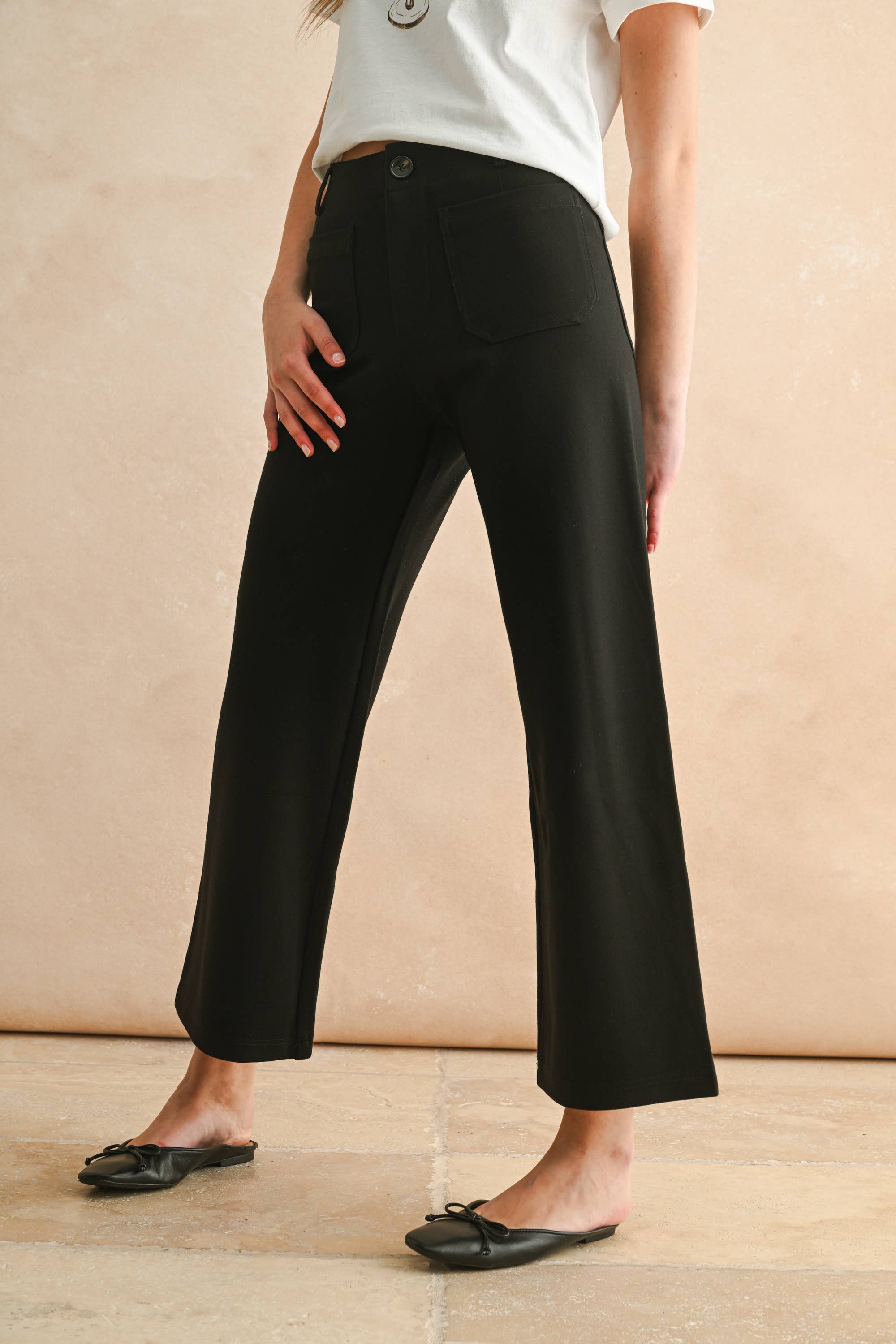Introducing our 2 Pocket Ponte Pants – the perfect blend of comfort and style that'll have you reaching for them again and again! Crafted from soft, stretchy ponte fabric, these pants move with you whether you're running errands or settling in for a cozy day at home. The two functional pockets are a game-changer for keeping your essentials within reach. With a flattering fit that works for countless body types, these versatile bottoms pair effortlessly with everything in your closet – dress them up with a blazer or keep it casual with your favorite tee. Available in a range of sizes to ensure the perfect fit for everyone. Say goodbye to uncomfortable pants and hello to your new go-to favorite!