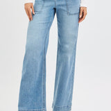 Risen High Rise Straight Leg Jeans With Cargo Front Pockets