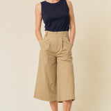 These cropped wide-leg trousers are the perfect addition to your wardrobe! With their playful and flattering style, you'll be sure to turn heads. Say goodbye to boring pants and hello to these quirky and chic trousers. (Warning: may cause excessive compliments!)