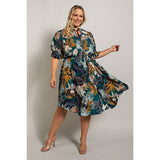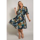 Fit N Flaire Self Tie Ruffle Neck Plus Size Dress
