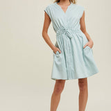Elevate your wardrobe with this sophisticated striped mini shirt dress, featuring functional buttons and a flattering waist tie detail that enhances your silhouette. Crafted from a comfortable blend of 50% cotton and 50% polyester, it includes a smooth 100% rayon lining for added comfort. Practical side pockets add convenience without compromising style. Please note, colors may vary slightly due to lighting and monitor differences.