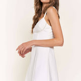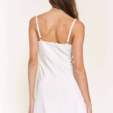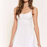 White Mini Dress is the perfect addition to your wardrobe! Made with a comfortable blend of 95% polyester and 5% spandex, this dress is both soft and stretchy. The 100% polyester lining ensures a perfect fit while the white color is effortlessly elegant. Stand out in style with this mini dress! Perfect for #graduation or #bridal