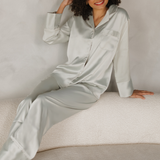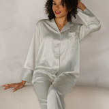 Like a quiet morning with a hot cup of coffee, our Agave Satin Pajama Pants Set radiates a soothing, calm energy. Inspired by the serene tones of a cactus landscape, this pale green set is designed for loungers who embrace the calmer side of life.