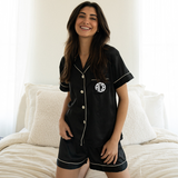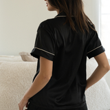 Black Satin Pajamas Shorts Set