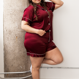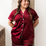 Wrapped in deep ruby tones and trimmed with crisp white piping, this buttery soft set feels like a gem in your wardrobe. Every element of these stretchy fabric pajamas were designed with intention.