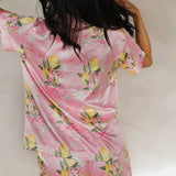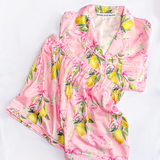 How irresistibly sweet are these lemon and pink bow patterned pajamas? Along with tiny floral details, this citrus adorned loungewear set is every inch the fanciful addition you need for your sleepwear collection!