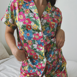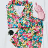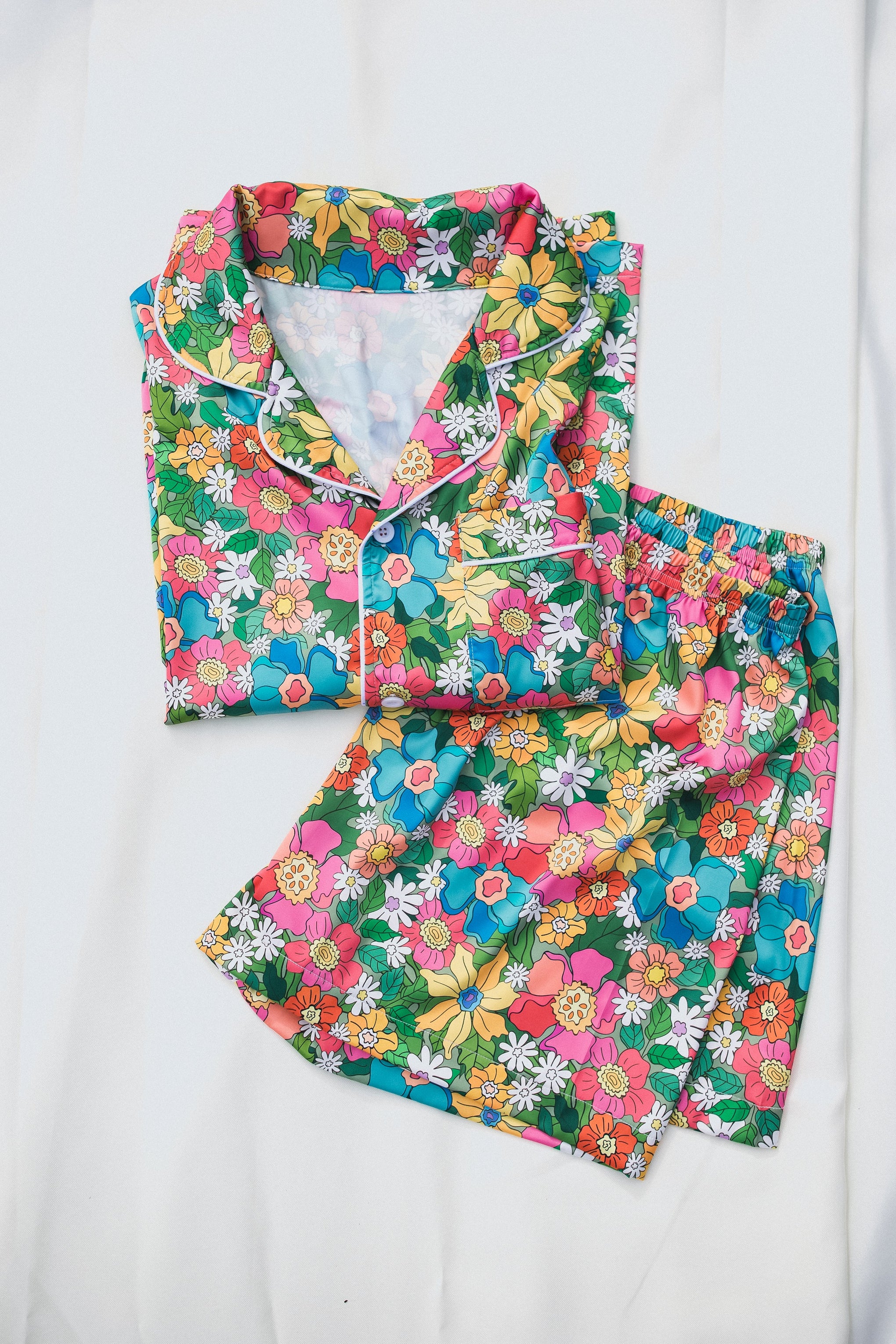 Groovy & retro inspired, our Flowerland Satin Pajamas are a centerpiece of our printed pajama collection. Blooming with vibrant florals, this set is made from our signature satin blend infused with a hint of spandex. Both lightweight and breathable, this effortless fabric's added stretch makes for an essential loungewear set.