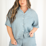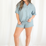 This versatile little number is just as perfect for a beach day as it is for a dinner date. Pair it with your favorite sandals for a laid-back look, or dress it up with wedges for a more polished vibe. Made from a blend fabric, the oversize top can be worn unbuttoned as a coverup or matching set with the adorable pocketed shorts.