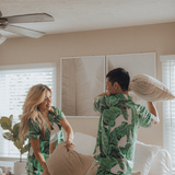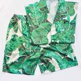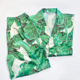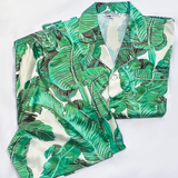Imagine slipping into the lap of luxury each night. The soft satin blend fabric, the comforting coolness of the material, and that unforgettable lush green banana leaf design that transports you to a tropical paradise.