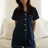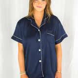 Navy Blue Satin Pajamas Shorts Set