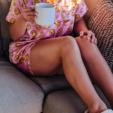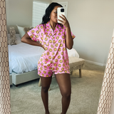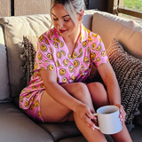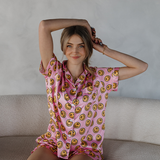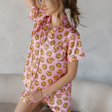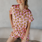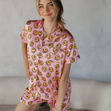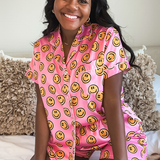 Add a little extra happy to your lounge time with our adorable Pink Smiley Set. The bubblegum-pink hue paired with allover smiley icons makes it impossible not to grin while you slip them on!