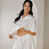 White Flowy Satin Pajamas