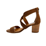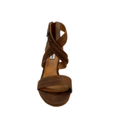 This block heel sandal lends a unique look with brass hardware and a braided top.