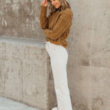 Wrap yourself in pure comfort with this super chunky cable knit sweater that's equal parts cozy and fun. The textured knit pairs perfectly with contrast ribbed detailing and playful pom-poms that add personality to your winter wardrobe. A mock neck keeps you snug without the bulk, making this the go-to piece for chilly days when you want to feel hugged by your sweater. Perfect for layering or wearing solo—your new winter favorite awaits.