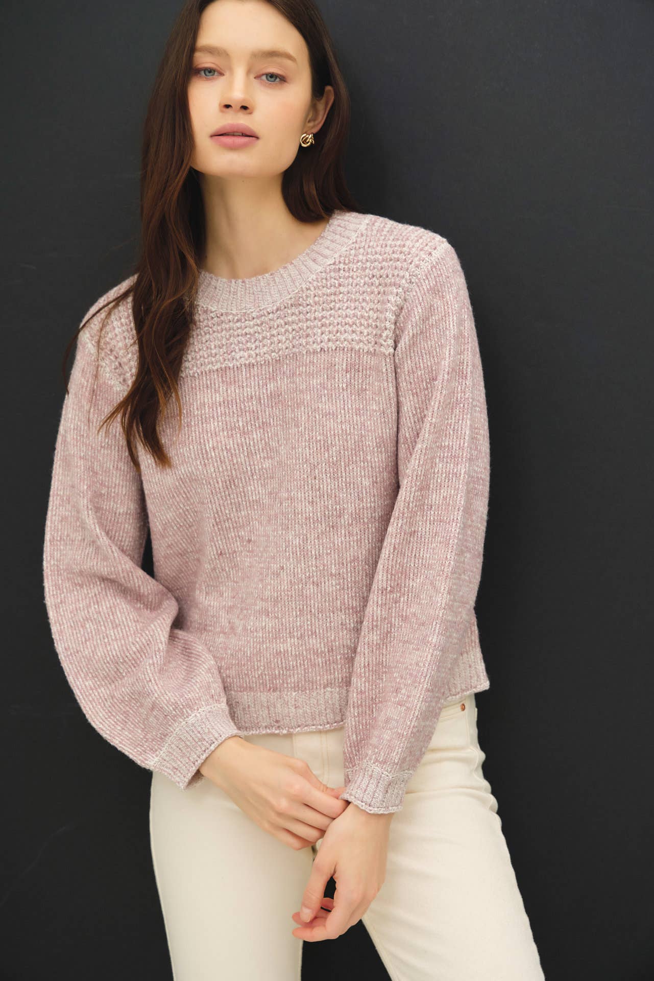This Textured Knit Crewneck Sweater is your cozy new favorite! Crafted with melange yarn, it delivers a soft touch that feels gentle against your skin. The playful volume sleeves add a fun twist, while the rolled hem and cuffs keep the look effortlessly cool. Designed with a relaxed, oversized fit, it’s perfect for layering up or lounging around. Whether paired with jeans or your favorite leggings, this sweater blends comfort and style in a way that’s as inviting as your favorite weekend plans.