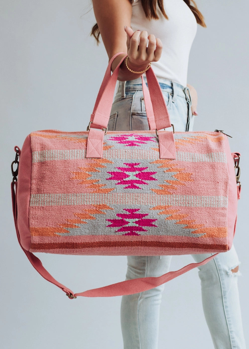 Orange, Bright Pink & Slate Aztec Duffel
