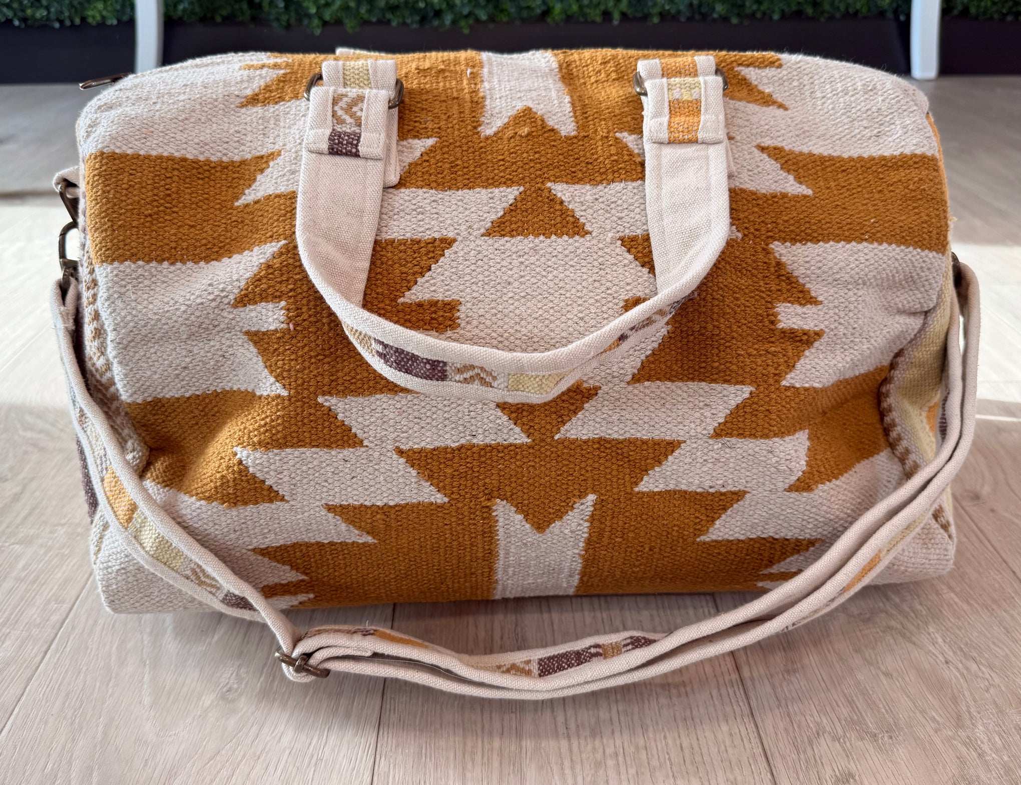 Cream and Orange Aztec Duffel